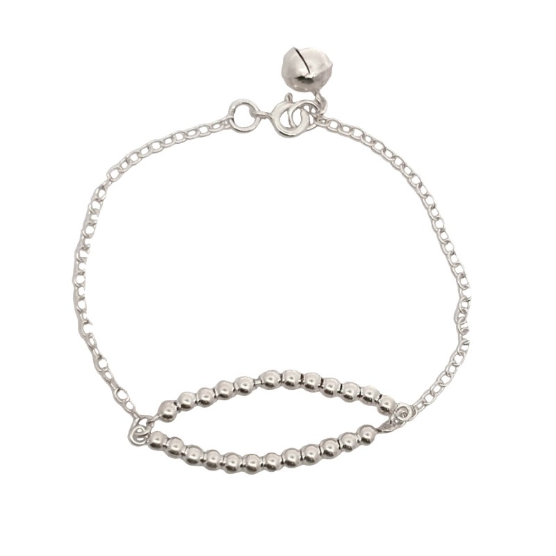 Pulsera doble bolitas y cascabel 19cms plata 925