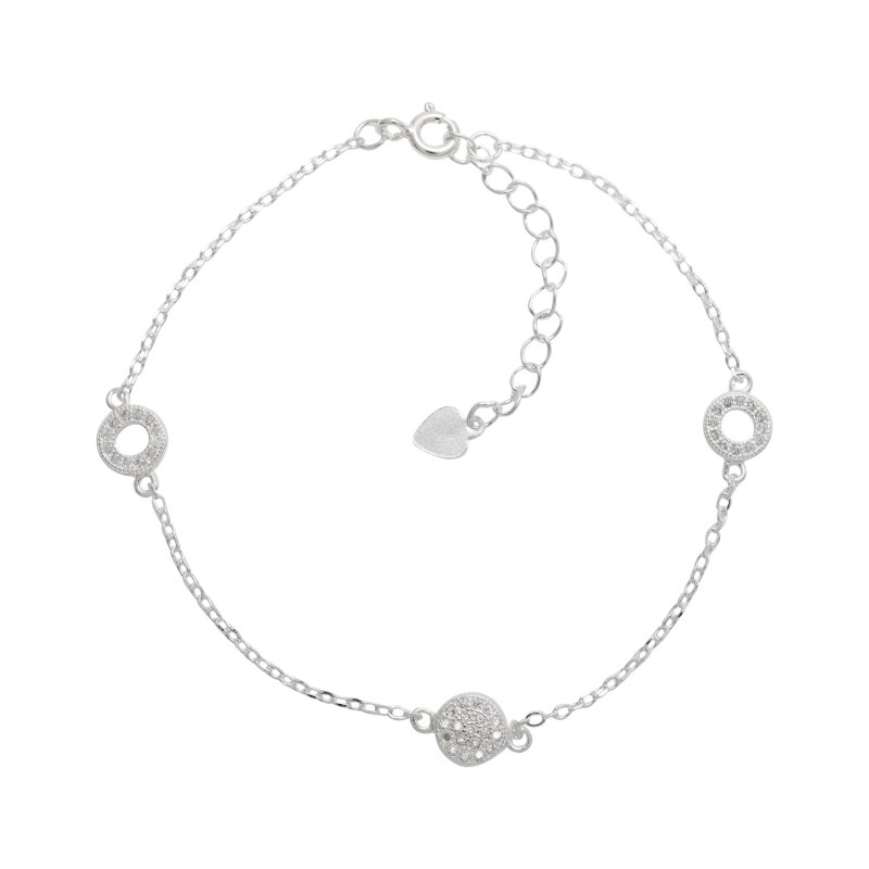 Pulsera con círculos con micro circones 17 cms mas extensión plata 925
