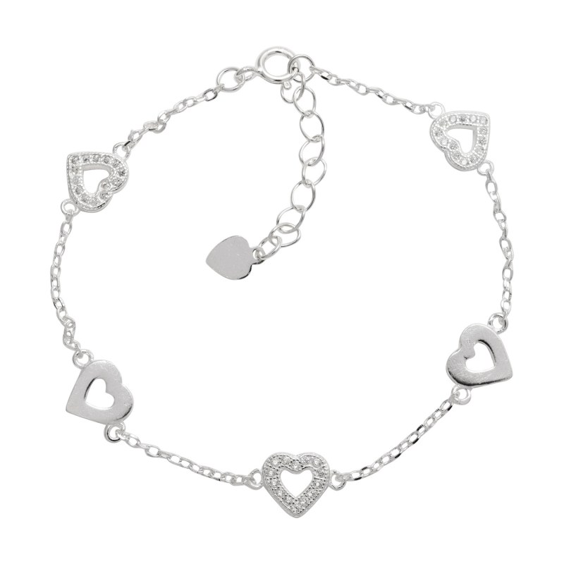 Pulsera corazones micro circones color cristal 17cms mas extensión Plata 925