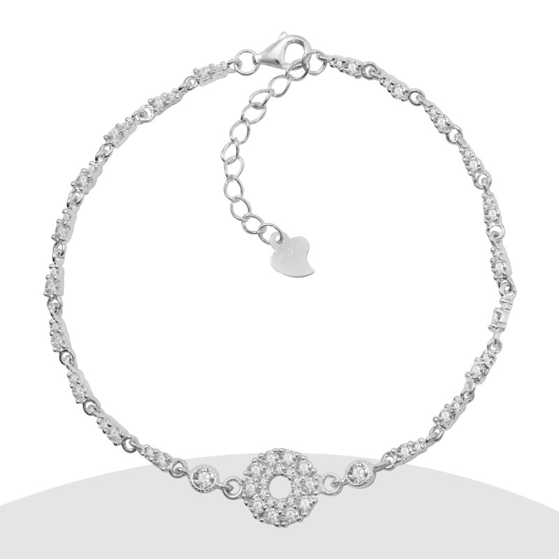 Pulsera circulo circón y micro circón 18 cms mas extensión plata 925