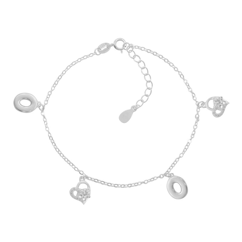 Pulsera corazones y ovalados 17cms mas 3cms de extensión Plata 925