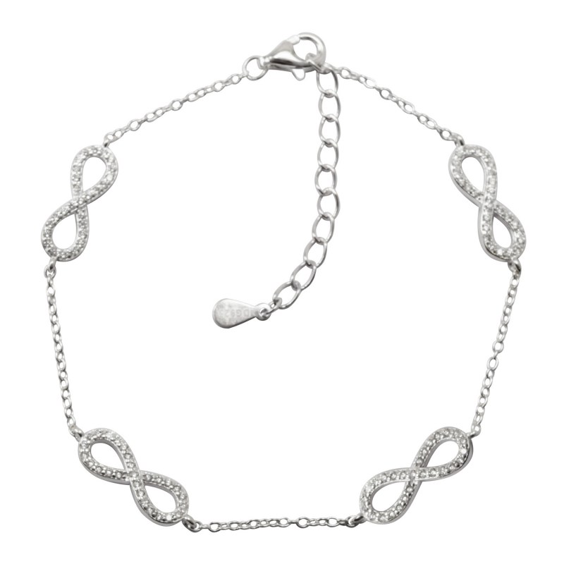 Pulsera cuatro infinitos 18 cms mas extensión plata 925