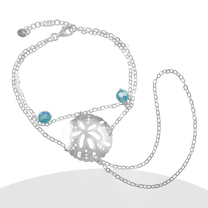 Pulsera cadena circulo multipunto y 18 cms color azul plata 925