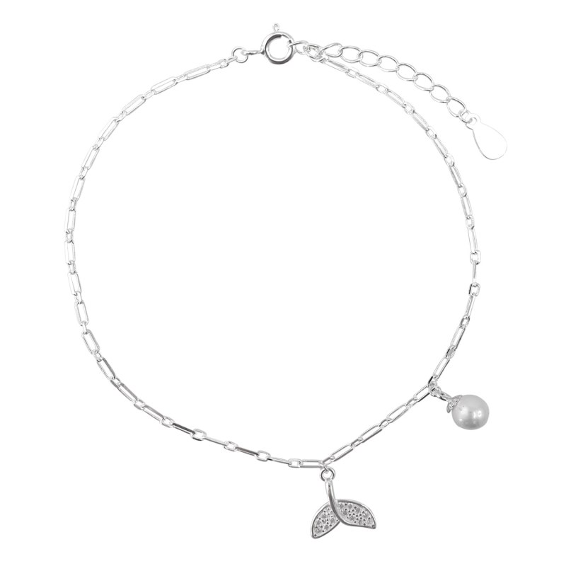 Pulsera cola de ballena y perla micro circones 18cms mas extensión Plata 925