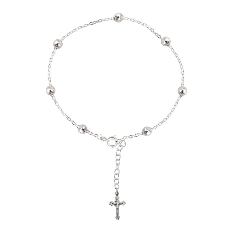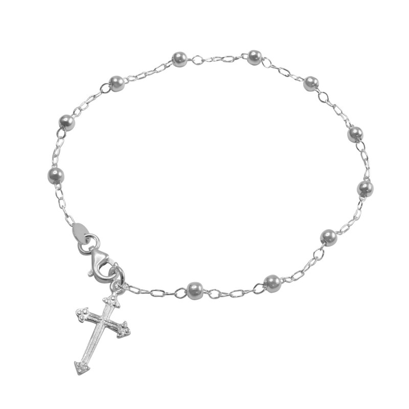 Pulsera bolitas y cruz colgante largo:18cms 3cms mas extensión Plata 925