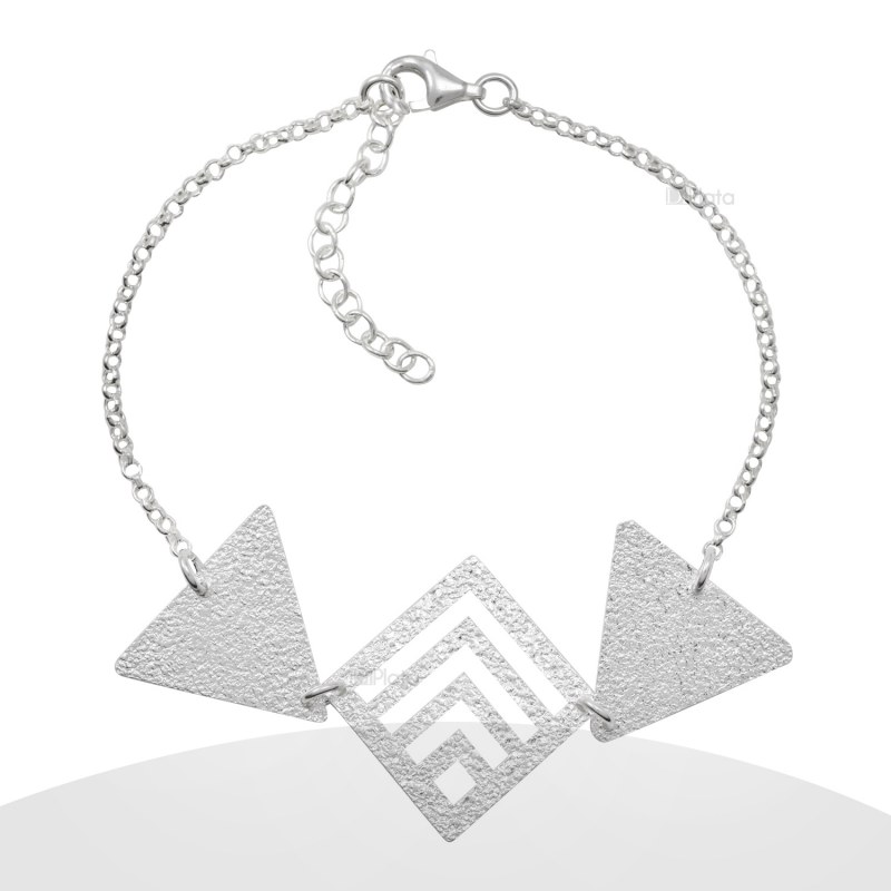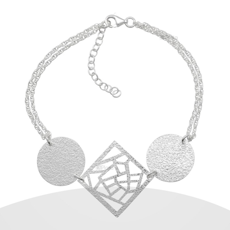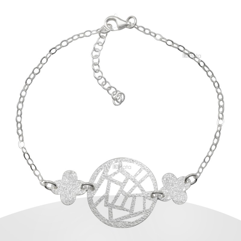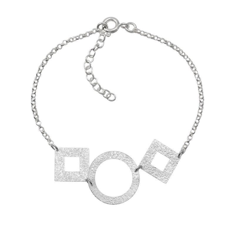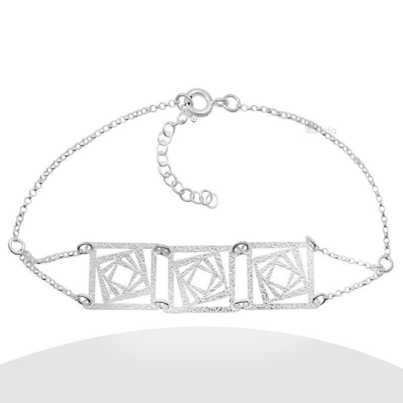 Pulsera satinada con diseños geométricos Plata 925 de 18 cms + alargue
