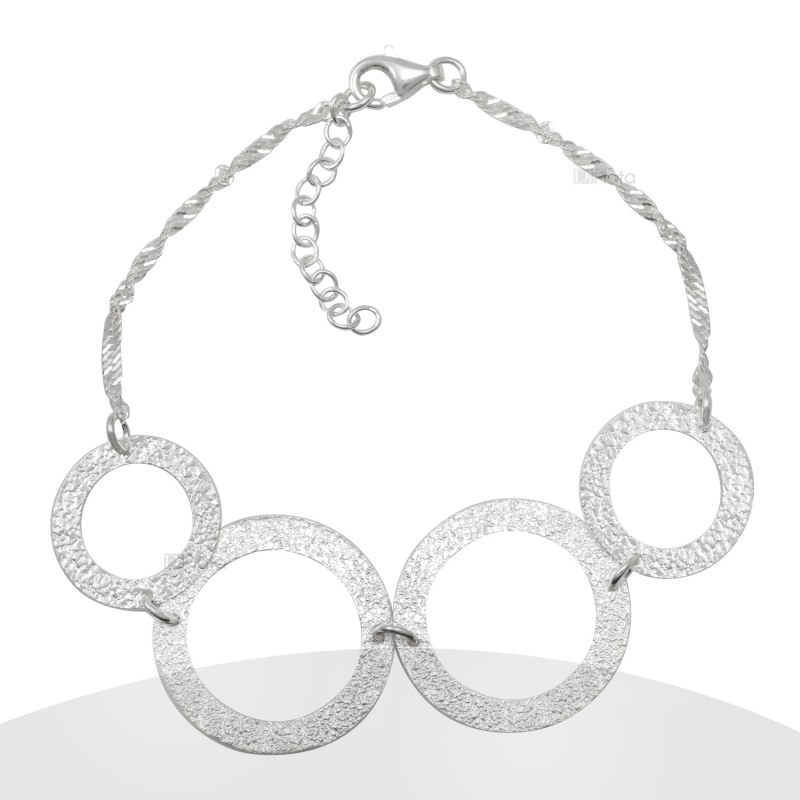 Pulsera círculos colgantes satinados 18cms mas 3cms extensión Plata 925