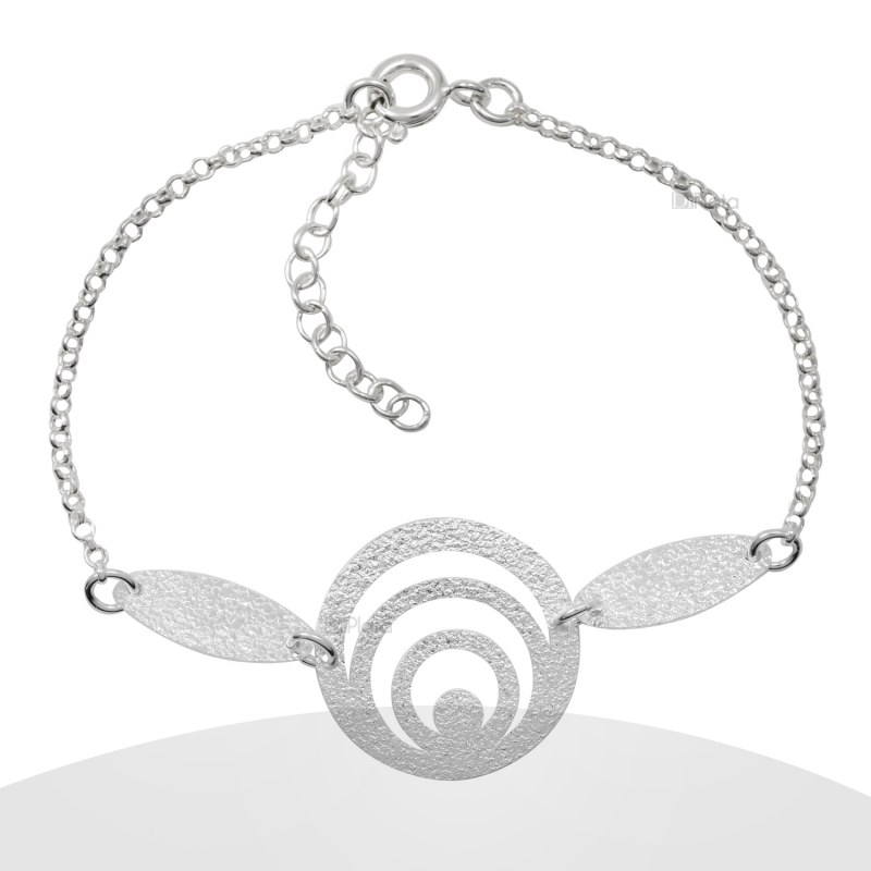 Pulsera satinada con circulo y flor largo: 18cms mas 3cms extensión Plata 925