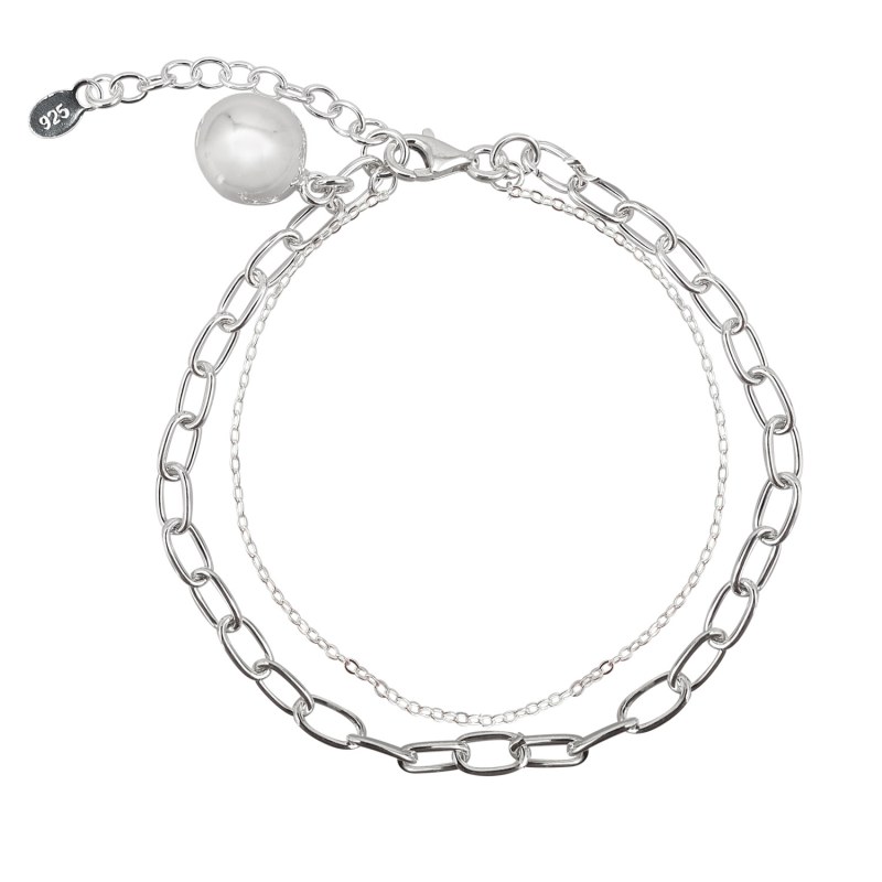 Pulsera doble cadena y bolita largo:16cms mas 8cms de extensión Plata 925