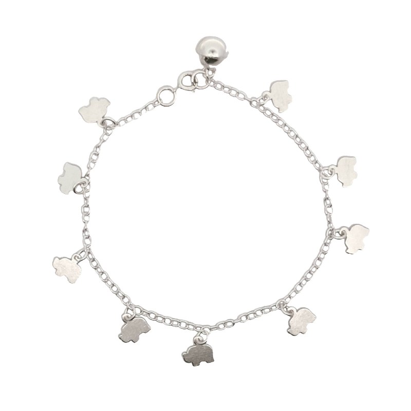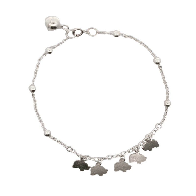 Pulsera elefantes colgantes y cascabel 18cms plata 925