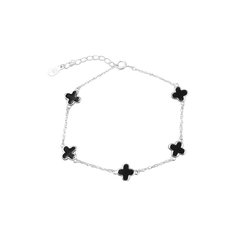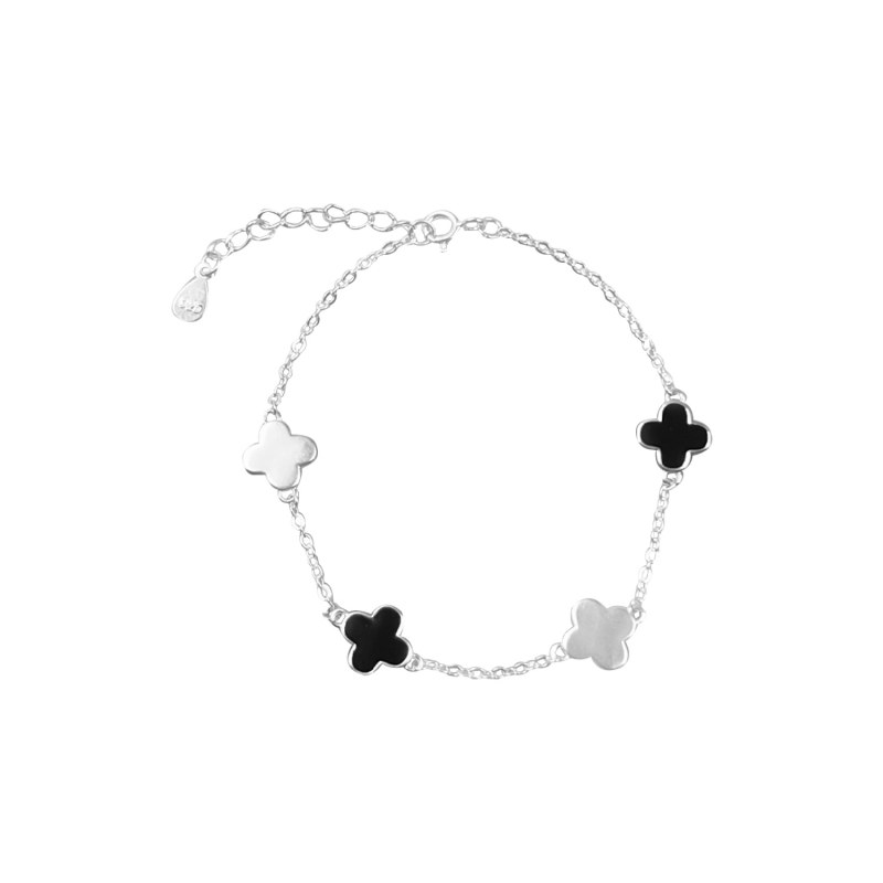 Pulsera trébol color negro y lisos 17cms Plata 925