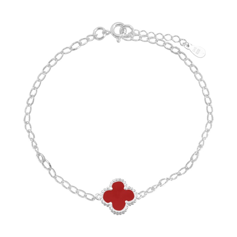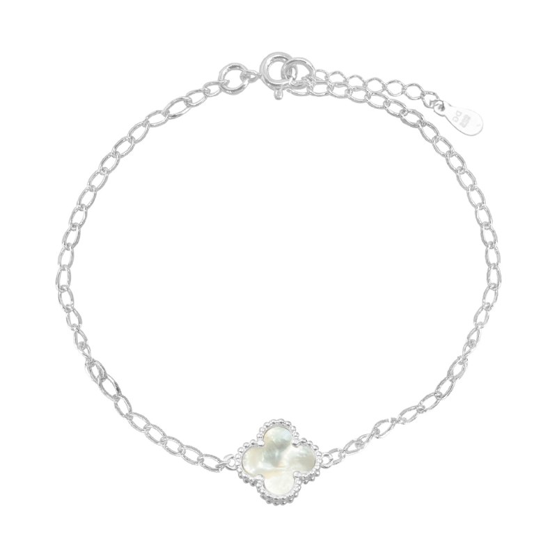 Pulsera trébol contorno puntitos largo: 17cms mas extensión Plata 925