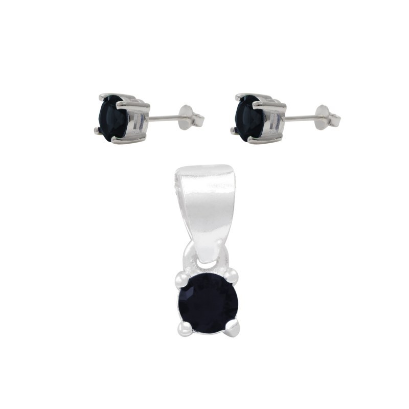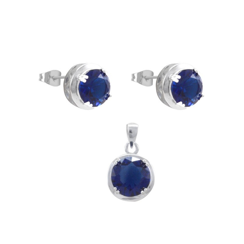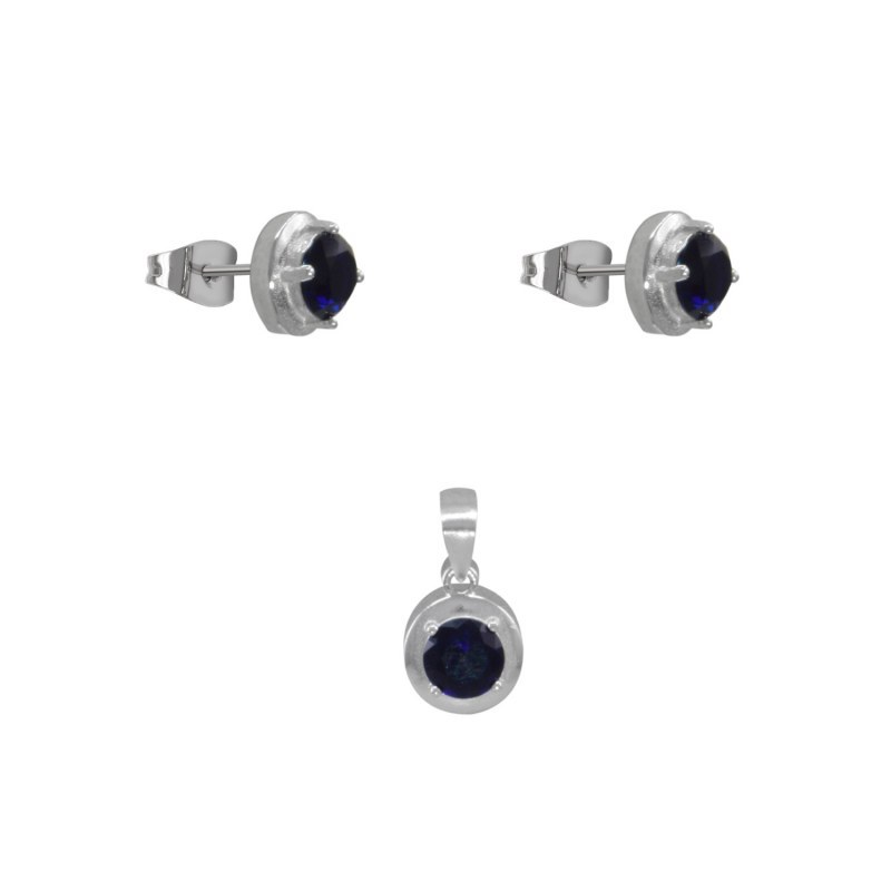 Set circón color azul oscuro aro apegado diam:8 mm Plata 925