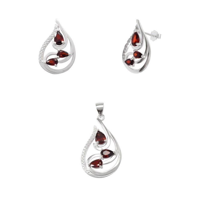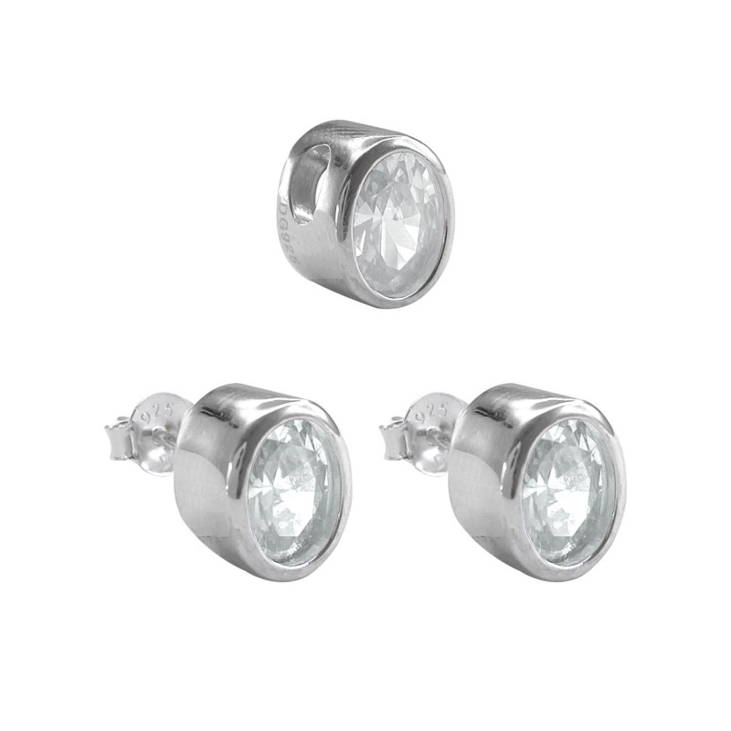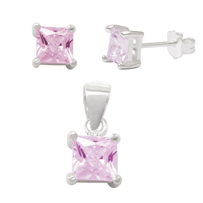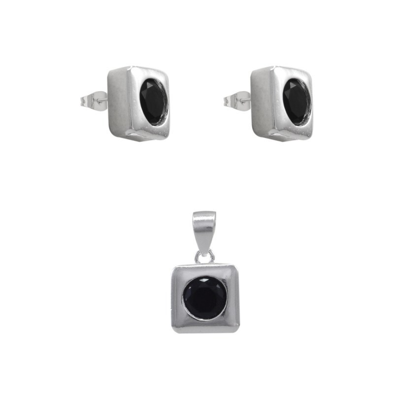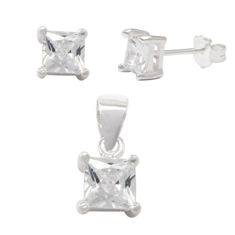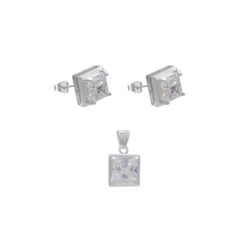 Set cuadrado circón color cristal diámetro 10x10 mm plata 925
