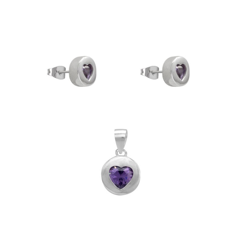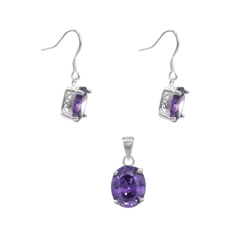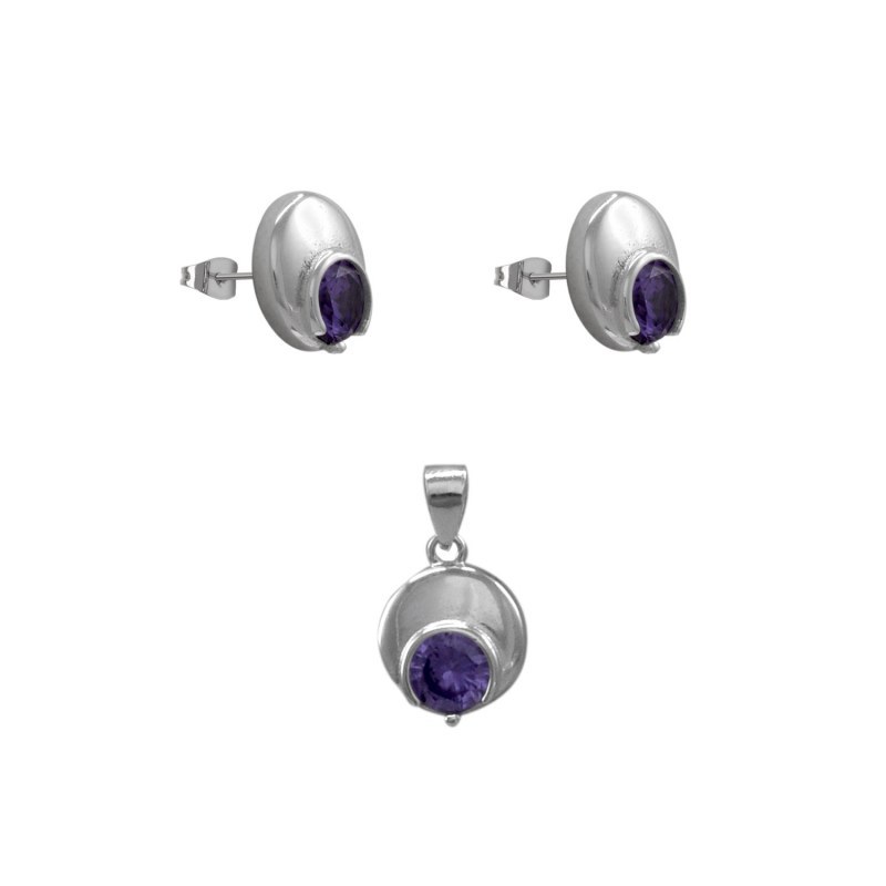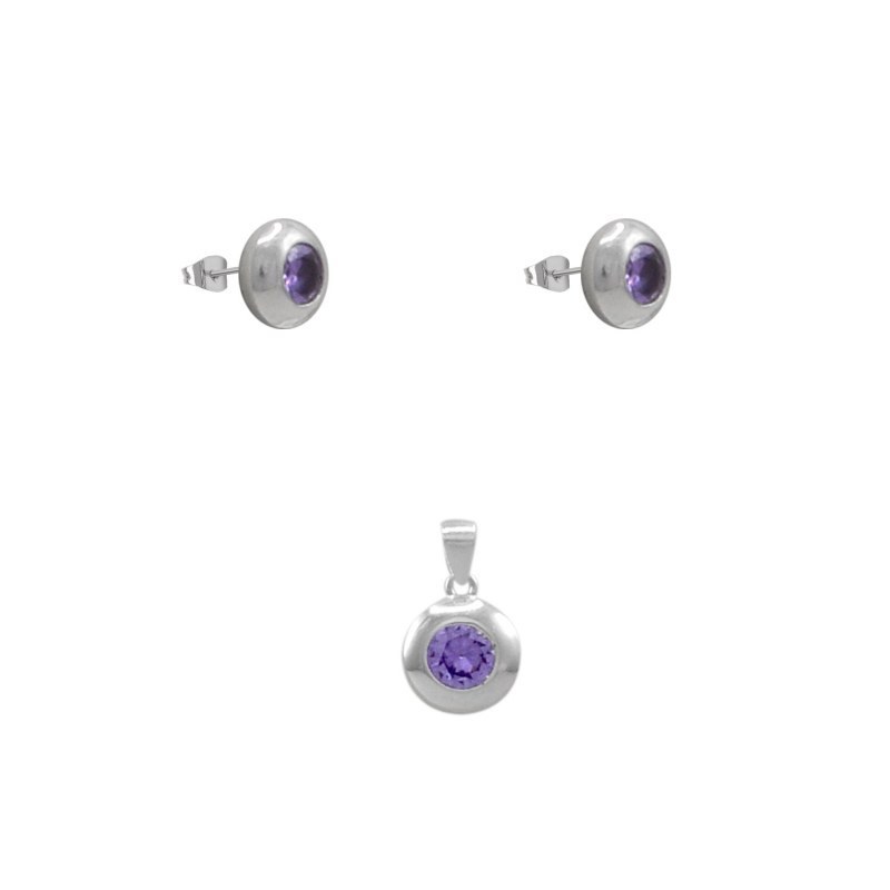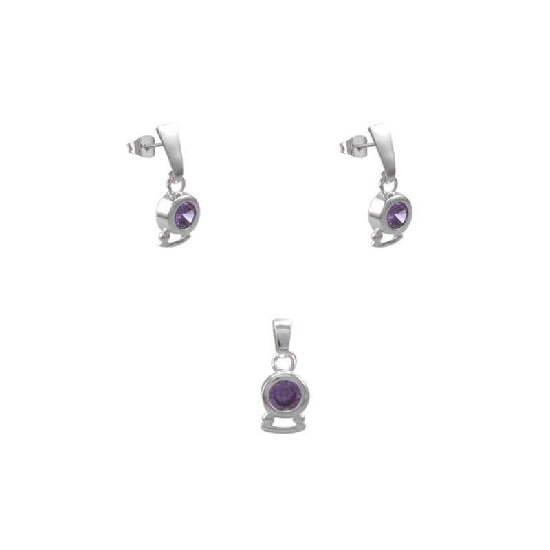 Set círculo con circón morado aros colgantes 12 diam:10 mm plata 925