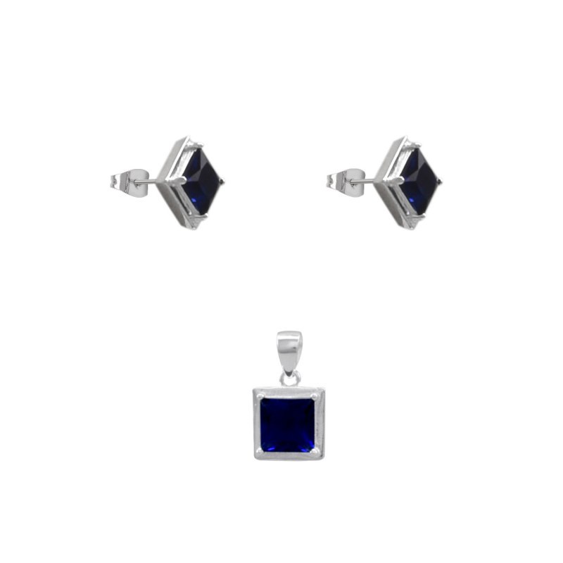 Set cuadrado color azularo apegado diam:8x8mm plata 925
