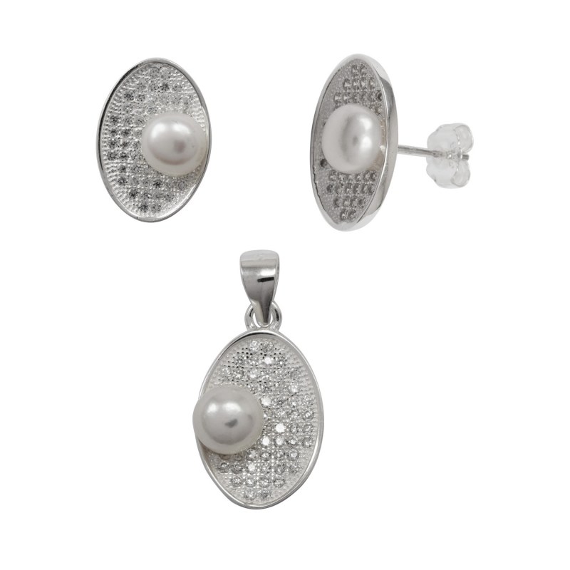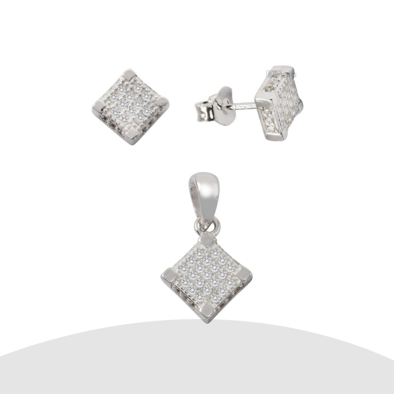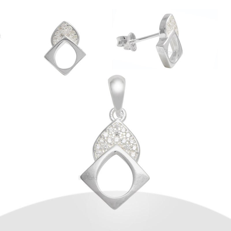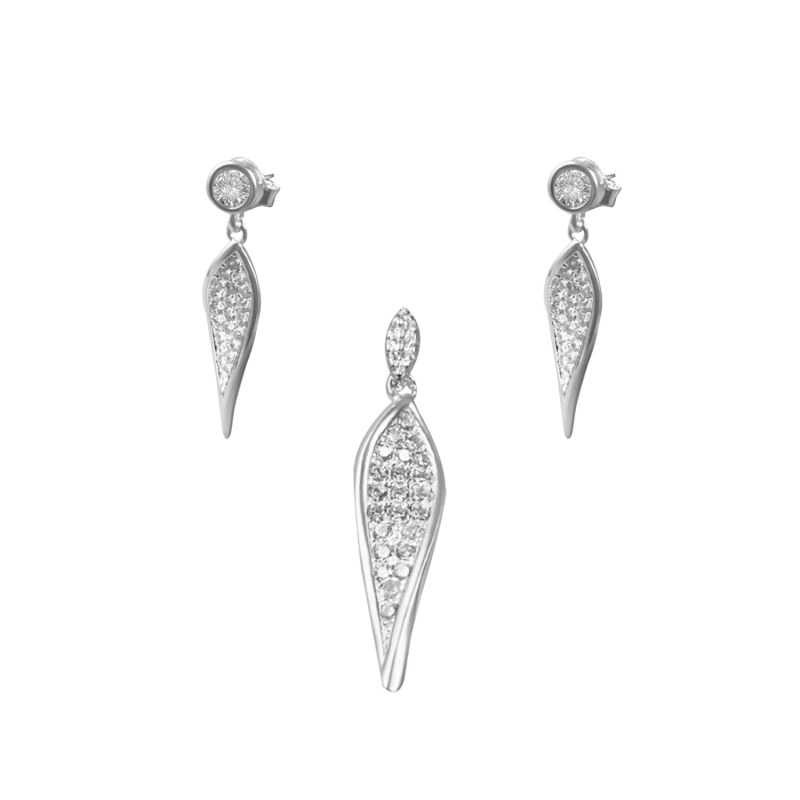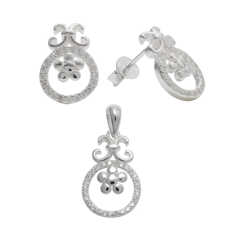 Conjunto micro circón color cristal diseño de flores Plata 925