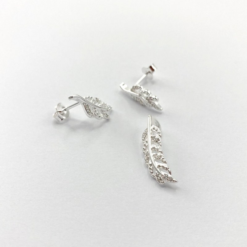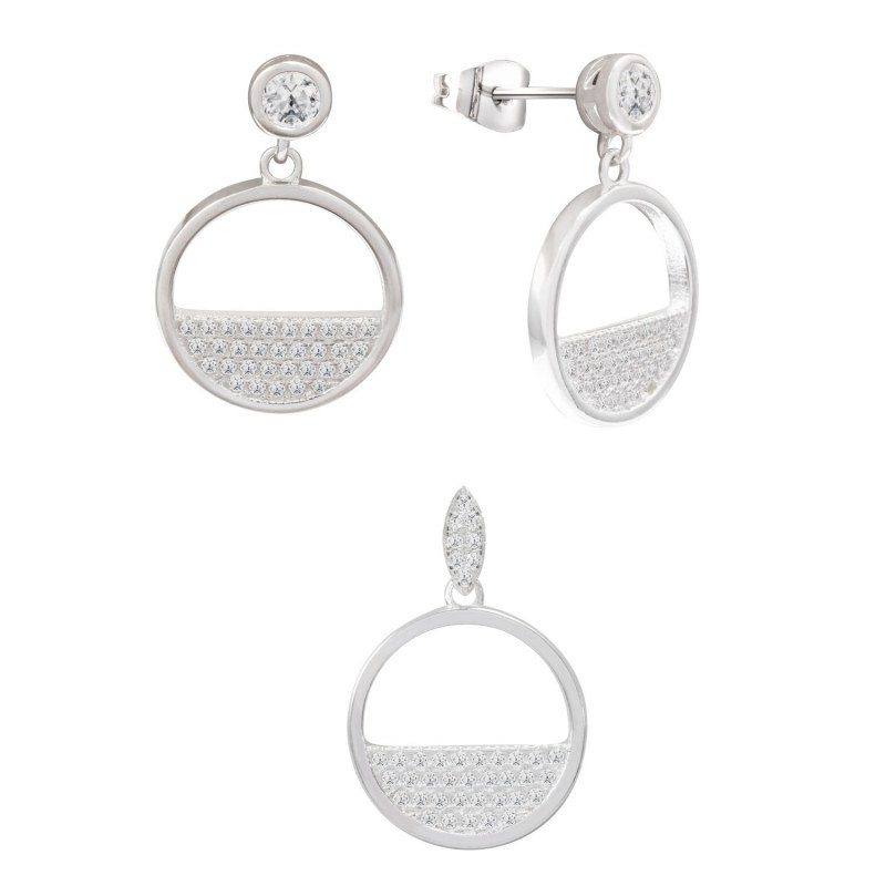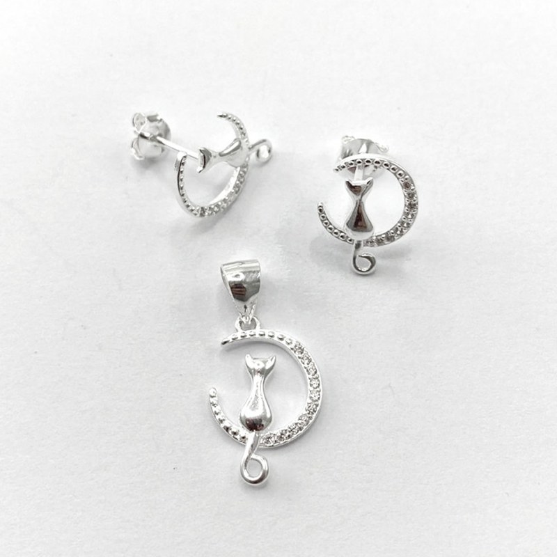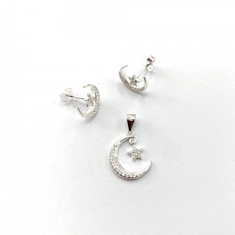 Set gato liso y media luna con micro circones color cristal Plata 925