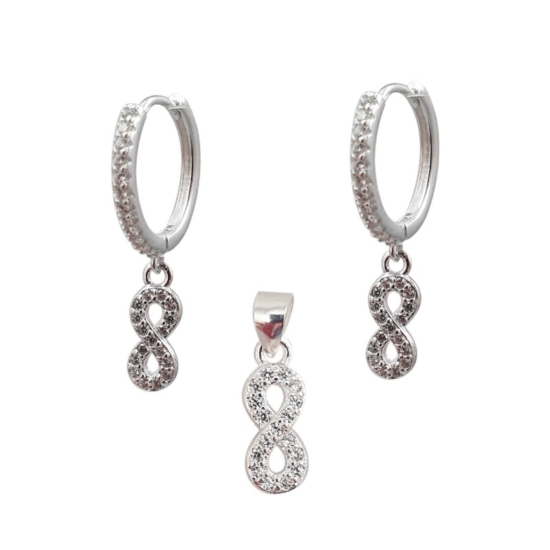 Set aros argolla símbolo imfinito con micro circones plata 925