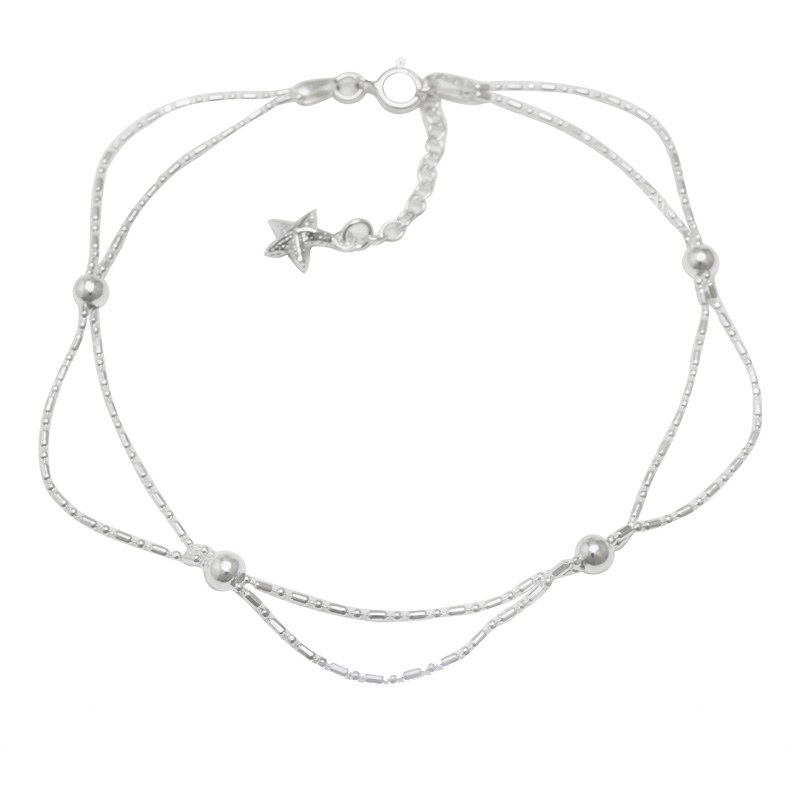 Tobillera doble cadena punto y coma cuatro bolitas plata 925