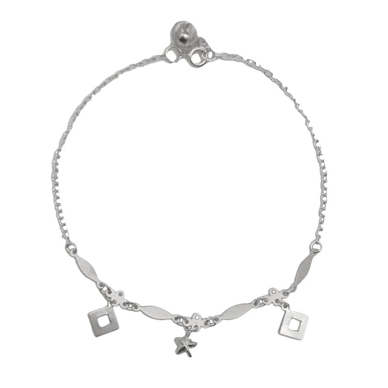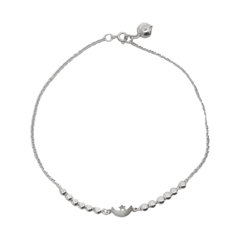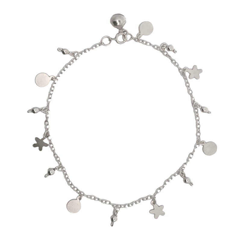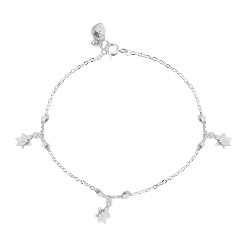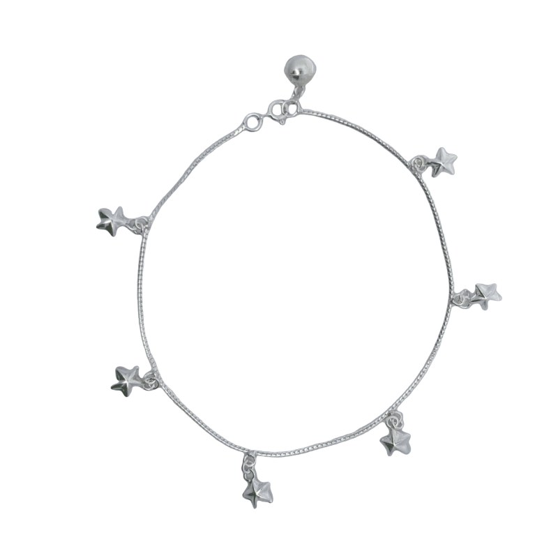 Tobillera estrellas infladas colgantes y cascabel plata 925