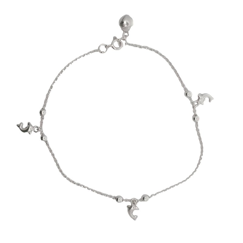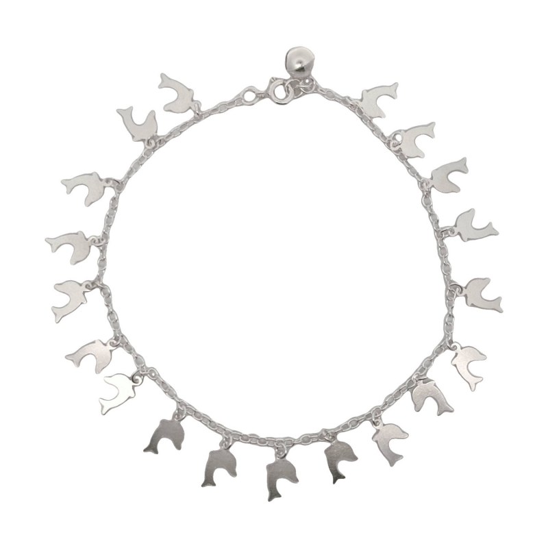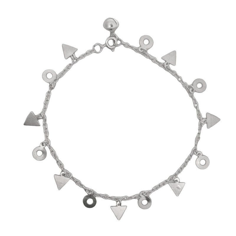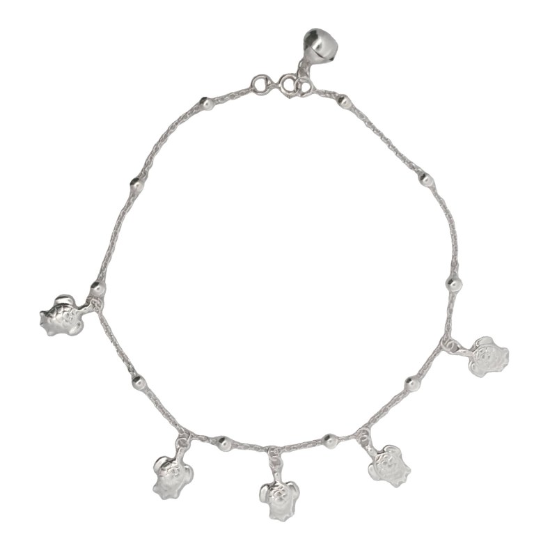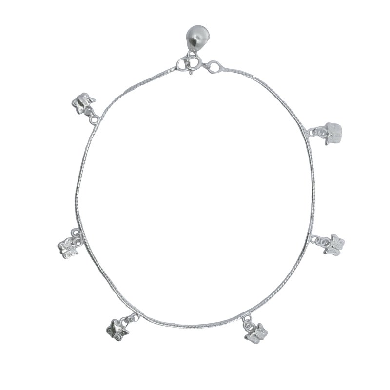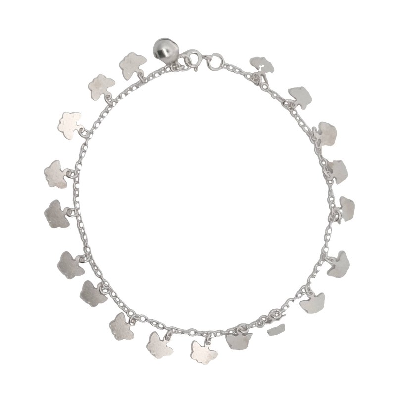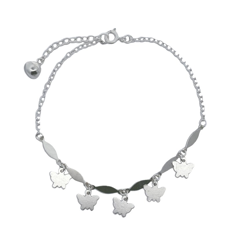Tobillera mariposas planas colgantes con divisiones y cascabel plata 925