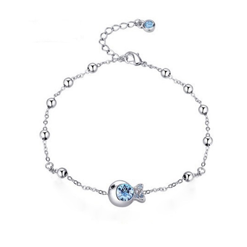 Pulsera cadena color aquamarine con cristales Swarovski